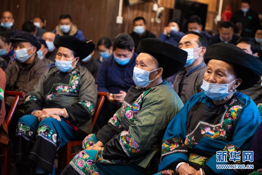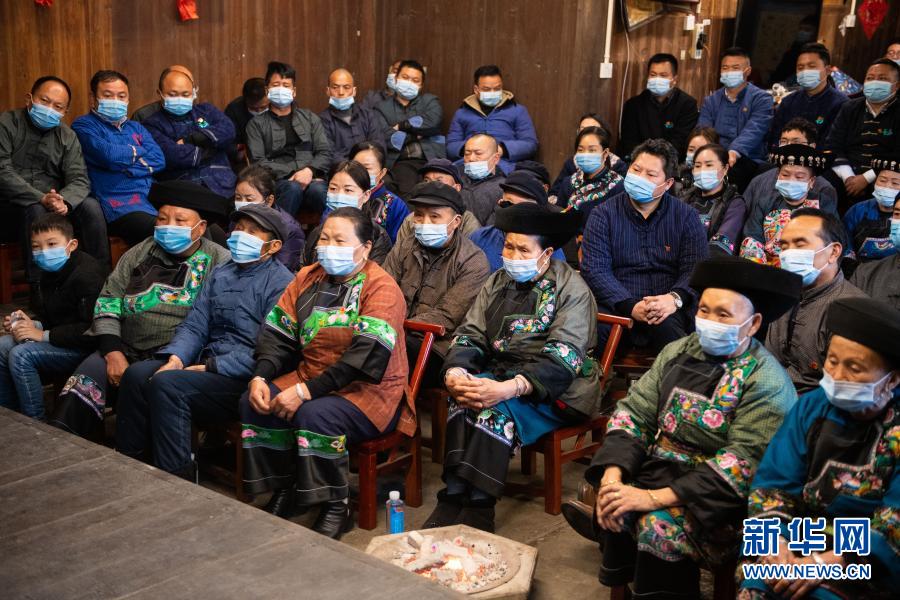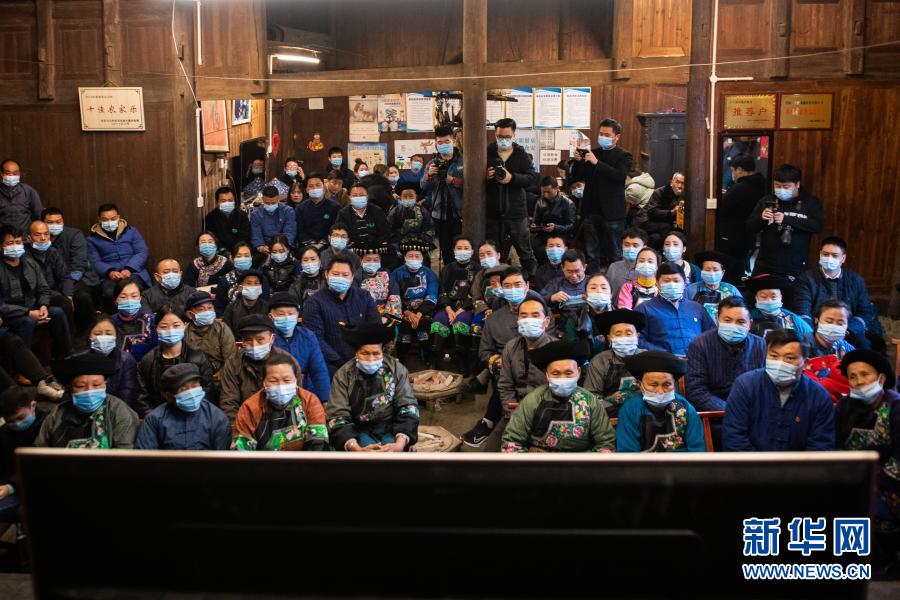 2月25日上午,在湖南省湘西土家族苗族自治州花垣縣十八洞村,當(dāng)?shù)馗刹?、群眾在一戶村民家收看全國脫貧攻堅總結(jié)表彰大會直播。新華社記者 陳思汗 攝