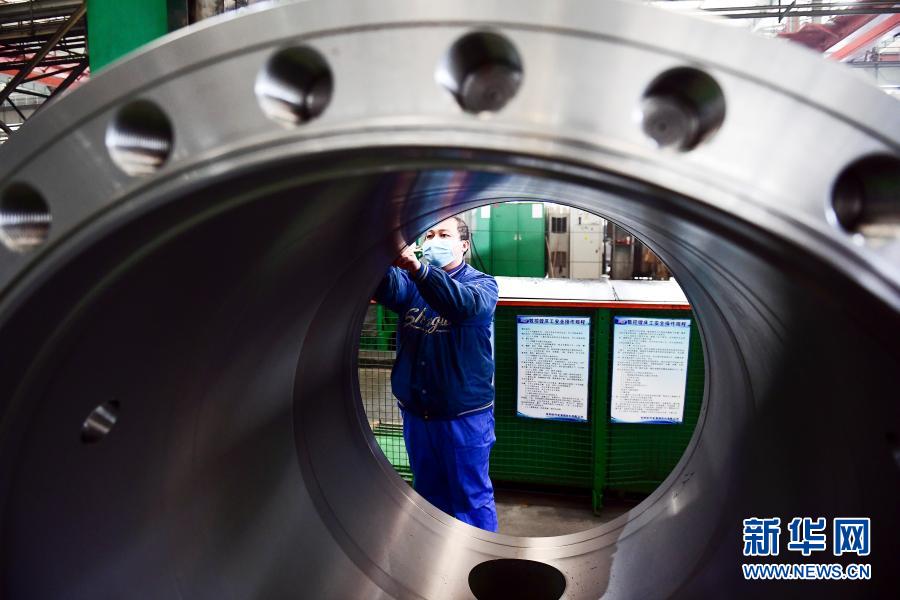 2020年2月10日,沈陽(yáng)鼓風(fēng)機(jī)集團(tuán)股份有限公司工人在生產(chǎn)線上工作。新華社發(fā)(沈鼓集團(tuán)提供)