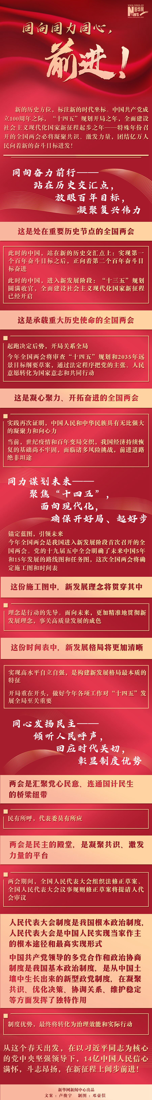 中國(guó)共產(chǎn)黨成立100周年之際,“十四五”規(guī)劃開(kāi)局之年,全面建設(shè)社會(huì)主義現(xiàn)代化國(guó)家新征程起步之年——特殊年份召開(kāi)的全國(guó)兩會(huì)必將凝聚共識(shí)、激發(fā)力量,團(tuán)結(jié)億萬(wàn)人民向著新的奮斗目標(biāo)進(jìn)發(fā)。