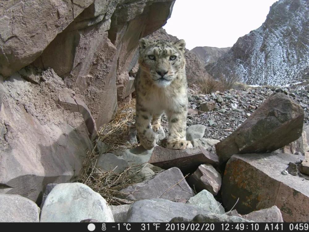 ↑2019年2月20日,在祁連山國(guó)家公園青海片區(qū),紅外相機(jī)拍攝到的雪豹照片。