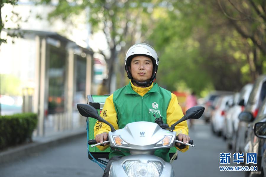 美團(tuán)買菜駐站配送員李海剛在給附近居民區(qū)送菜途中 (資料照片)。新華社發(fā)