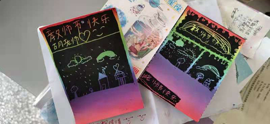 但胡永超喜歡這個(gè)職業(yè)。今年教師節(jié),有學(xué)生送他一張畫,畫滿紅色桃心,寫著:“我知道我們才相處幾天,可是我知道你是一個(gè)好老師。” 他教的四年級學(xué)生還曾自發(fā)湊錢,請家長去鎮(zhèn)里買蛋糕,給他過生日。