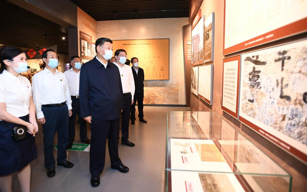2020年9月16日,習(xí)近平在郴州市汝城縣文明瑤族鄉(xiāng)沙洲瑤族村“半條被子的溫暖”專題陳列館,了解當(dāng)?shù)亻_(kāi)展紅色教育情況。(新華社記者 謝環(huán)馳 攝)