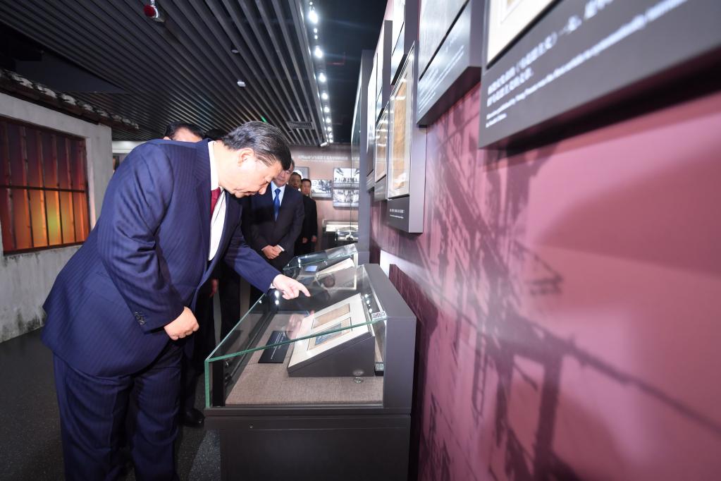 2017年10月31日,習(xí)近平等在上海中共一大會(huì)址紀(jì)念館參觀。(新華社記者 李濤 攝)