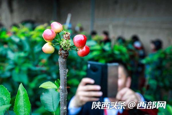 在櫻桃棚內(nèi),紅色的櫻桃一簇一簇簇?fù)碓跇渖?,在綠油油的樹葉間顯得嬌艷欲滴。路寶告訴記者,子長的櫻桃可以趕在其他產(chǎn)地的櫻桃未上市前售賣,因此市場行情好,加上保存期長,適合現(xiàn)代物流的發(fā)展,從而產(chǎn)生了比較好的收益。“我們這個(gè)櫻桃可以在其他櫻桃還沒有上市的時(shí)候,借助現(xiàn)代物流賣到全國各地,甚至可以賣到櫻桃的主產(chǎn)區(qū)去。”