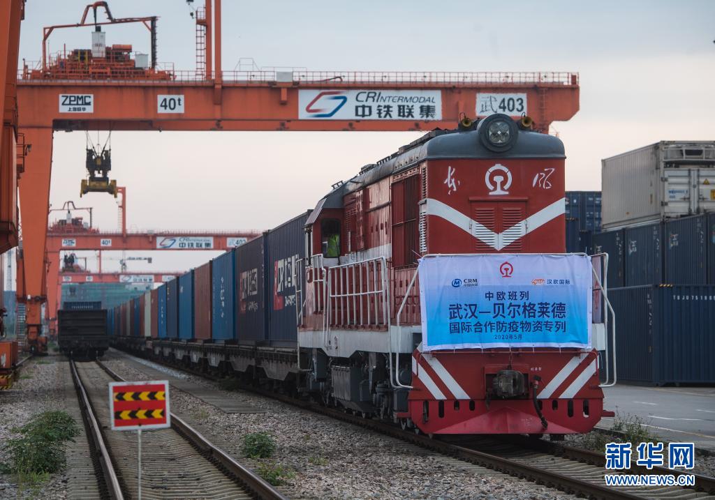 2020年5月9日,開往塞爾維亞貝爾格萊德的中歐班列(武漢)準(zhǔn)備從吳家山站駛出,該班列滿載3500立方米、294.42噸國(guó)際合作防疫物資,支援塞爾維亞及周邊國(guó)家抗擊新冠肺炎疫情。新華社記者 肖藝九 攝