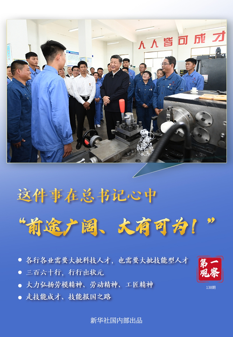 “要樹立正確人才觀”。習(xí)近平總書記反復(fù)強(qiáng)調(diào)培養(yǎng)技術(shù)技能人才的重要性,還多次走到老師和同學(xué)們中間,為大家加油打氣。