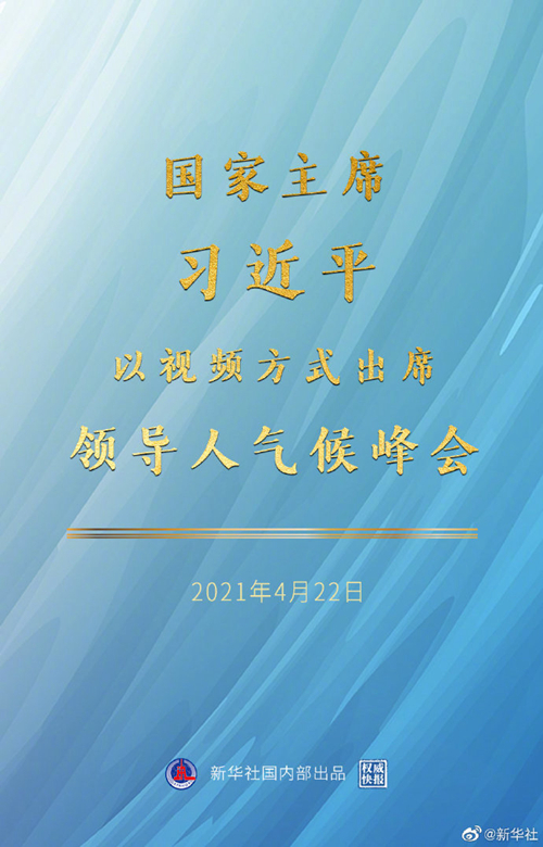 北京時間4月22日晚,領導人氣候峰會開始舉行,國家主席習近平在北京以視頻方式出席。