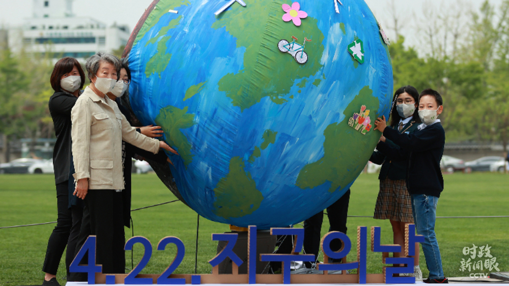 △4月22日,韓國首爾舉行迎接“世界地球日”活動,呼吁防疫和環(huán)保。(圖/視覺中國)