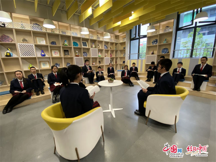 隨后,媒體代表們參觀了學(xué)校思維碰撞、巖彩壁畫、未來校園、牛仔花園等特色展區(qū)。在學(xué)校朗讀角,七年級(jí)的張語桐手捧一本《失群之鳥》詩集,看得入迷。她喜歡看科幻小說和人物傳記,開放的讀書角就成了她和小伙伴常來的地方,位于教室另一個(gè)側(cè)的“思維碰撞”讀書分享區(qū),也隨時(shí)可以跟同學(xué)們交流讀書心得。