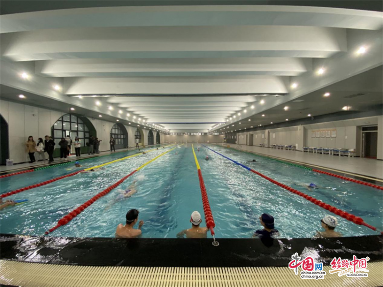 在學(xué)校室內(nèi)游泳館,該校體育老師介紹,泳池是標(biāo)準(zhǔn)的五條道50米長(zhǎng)池,采用智能水循環(huán)系統(tǒng),定時(shí)加溫、消毒,保證水質(zhì)干凈。學(xué)校還有按國(guó)家標(biāo)準(zhǔn)建設(shè)的籃球場(chǎng),田徑場(chǎng),各項(xiàng)體育設(shè)施非常先進(jìn)。