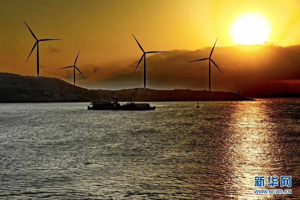 這是在福建南日島海域拍攝的風(fēng)力發(fā)電場(chǎng)(2019年2月22日攝)。新華社記者 張國(guó)俊 攝