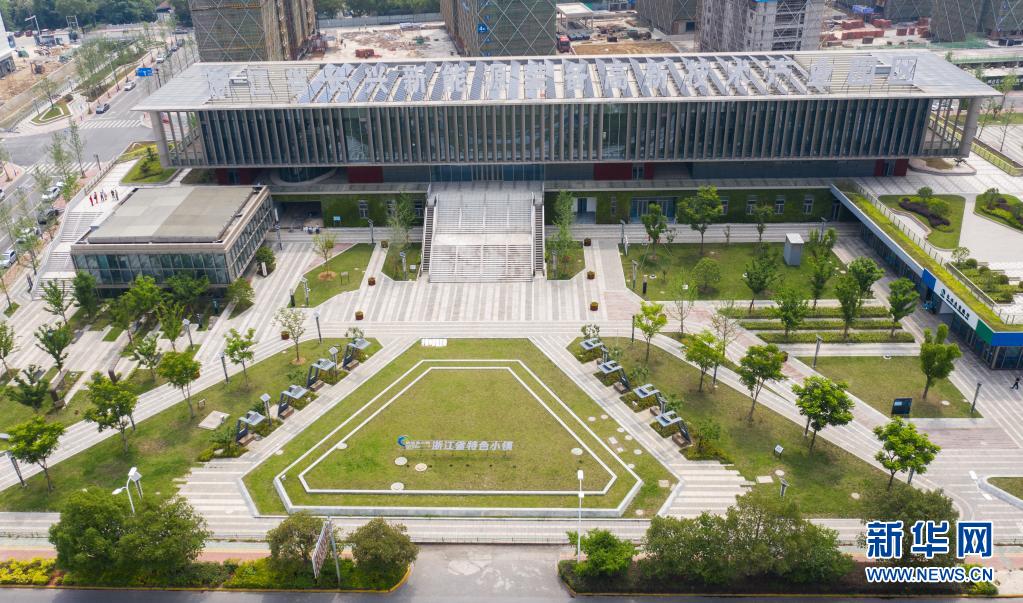 空中俯瞰浙江省長(zhǎng)興縣畫(huà)溪街道新能源小鎮(zhèn)“城市客廳”(2020年5月21日攝,無(wú)人機(jī)照片)。新能源小鎮(zhèn)“城市客廳”采用分布式光伏建筑一體化發(fā)電系統(tǒng),年發(fā)電量達(dá)28萬(wàn)千瓦時(shí),在滿足建筑主體自用的前提下,多余電量還可并入電網(wǎng),產(chǎn)生“綠色收益”。新華社記者 徐昱 攝