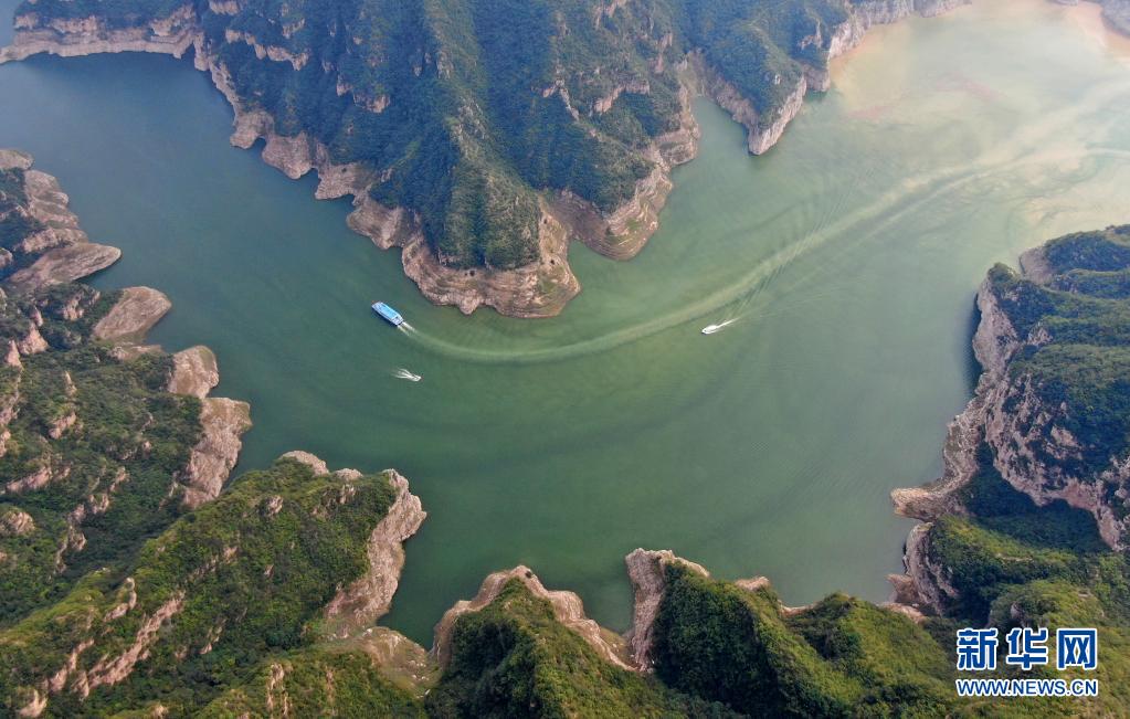 這是在河南濟(jì)源拍攝的“黃河三峽”景色(2020年9月12日攝,無(wú)人機(jī)照片)。新華社記者 郝源 攝