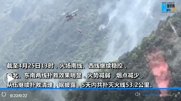 根據(jù)氣象部門預報,冕寧4月25日當日5時至11時,天氣晴朗,風力4至5級,火場前線聯(lián)合指揮部命令隊伍抓住氣象條件相對有利的態(tài)勢,組織撲火力量投入滅火攻堅。