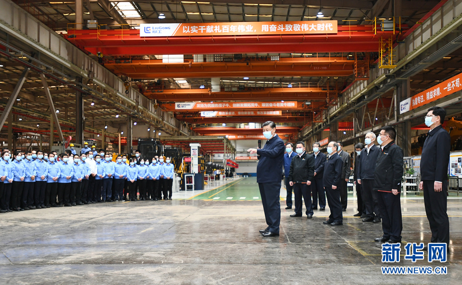 當(dāng)天下午,習(xí)近平來到柳州市考察調(diào)研。在廣西柳工集團(tuán)有限公司,習(xí)近平先后走進(jìn)公司展廳、研發(fā)實(shí)驗(yàn)中心、挖掘機(jī)裝配廠等,聽取企業(yè)發(fā)展情況介紹,察看主要產(chǎn)品展示,同企業(yè)職工和技術(shù)研發(fā)人員親切交談。習(xí)近平強(qiáng)調(diào),制造業(yè)高質(zhì)量發(fā)展是我國經(jīng)濟(jì)高質(zhì)量發(fā)展的重中之重,建設(shè)社會(huì)主義現(xiàn)代化強(qiáng)國、發(fā)展壯大實(shí)體經(jīng)濟(jì),都離不開制造業(yè),要在推動(dòng)產(chǎn)業(yè)優(yōu)化升級(jí)上繼續(xù)下功夫。只有創(chuàng)新才能自強(qiáng)、才能爭(zhēng)先,要堅(jiān)定不移走自主創(chuàng)新道路,把創(chuàng)新發(fā)展主動(dòng)權(quán)牢牢掌握在自己手中。要堅(jiān)持黨對(duì)國有企業(yè)的全面領(lǐng)導(dǎo),堅(jiān)持加強(qiáng)黨的領(lǐng)導(dǎo)和完善公司治理相統(tǒng)一,在深化企業(yè)改革中搞好黨的建設(shè),充分發(fā)揮黨組織在企業(yè)改革發(fā)展中的領(lǐng)導(dǎo)核心作用。