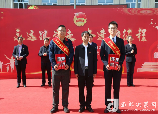 集團(tuán)公司副總裁楊會軍為寶雞市青年突擊手牛力,優(yōu)秀共青團(tuán)干部趙騰頒獎