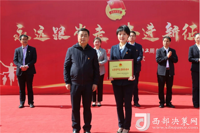 集團(tuán)公司黨委副書記郭拴新為寶雞市首屆“最美青工”李飛、祁耀華頒獎