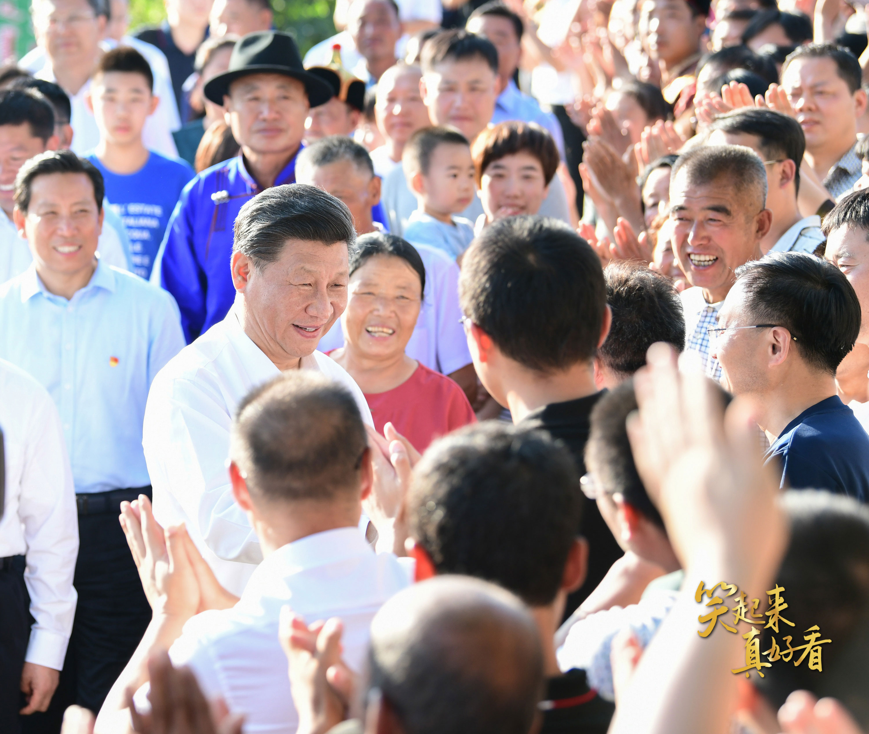 △2019年7月15日,習(xí)近平總書記赴內(nèi)蒙古自治區(qū)考察調(diào)研,在赤峰市喀喇沁旗河南街道馬鞍山村同群眾親切握手。