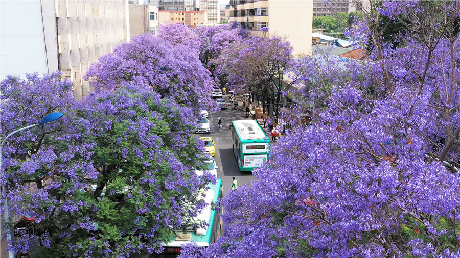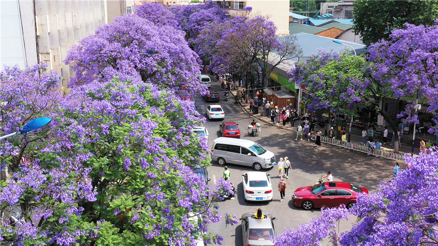 【“飛閱”中國(guó)】用藍(lán)花楹敲開(kāi)昆明夏天的門