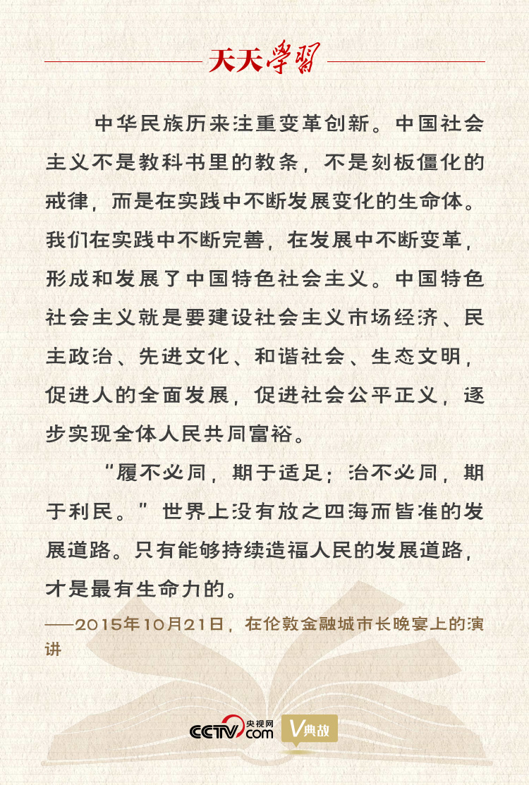 近代以后,中國飽受戰(zhàn)亂動蕩,歷經(jīng)長達一個多世紀(jì)的磨難。100多年前,中國人民開始“睜眼看世界”,努力探尋救國救民的道路。中國民主革命的先行者孫中山先生曾經(jīng)到英國求學(xué)。在經(jīng)歷君主立憲制、議會制、總統(tǒng)制等的失敗嘗試后,中國最終選擇了社會主義道路。這是歷史的選擇、人民的選擇。中國共產(chǎn)黨以馬克思主義為指導(dǎo),領(lǐng)導(dǎo)中國人民經(jīng)過28年的浴血奮戰(zhàn)最終取得革命勝利、實現(xiàn)民族獨立和人民解放。新中國成立以來,我國社會各方面都發(fā)生了巨大變化,尤其是改革開放以來,我國經(jīng)濟快速發(fā)展,綜合國力進一步增強,人民生活不斷改善,社會各項事業(yè)全面進步。社會主義在中國顯示出蓬勃生機和強大活力,中國用幾十年時間走完了發(fā)達國家?guī)装倌曜哌^的發(fā)展歷程。這一切充分說明,中國人民正走在正確的道路上。