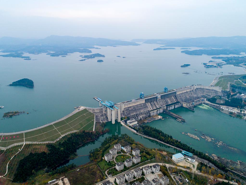 2019年11月26日無人機(jī)拍攝的丹江口水庫大壩。新華社記者 熊琦 攝