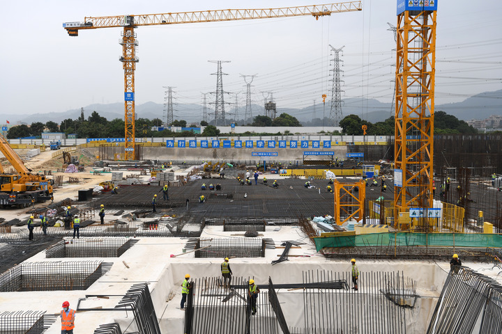 工人在深圳光明科學(xué)城啟動區(qū)項(xiàng)目工地作業(yè)(2020年3月12日攝)。 新華社記者 梁旭 攝