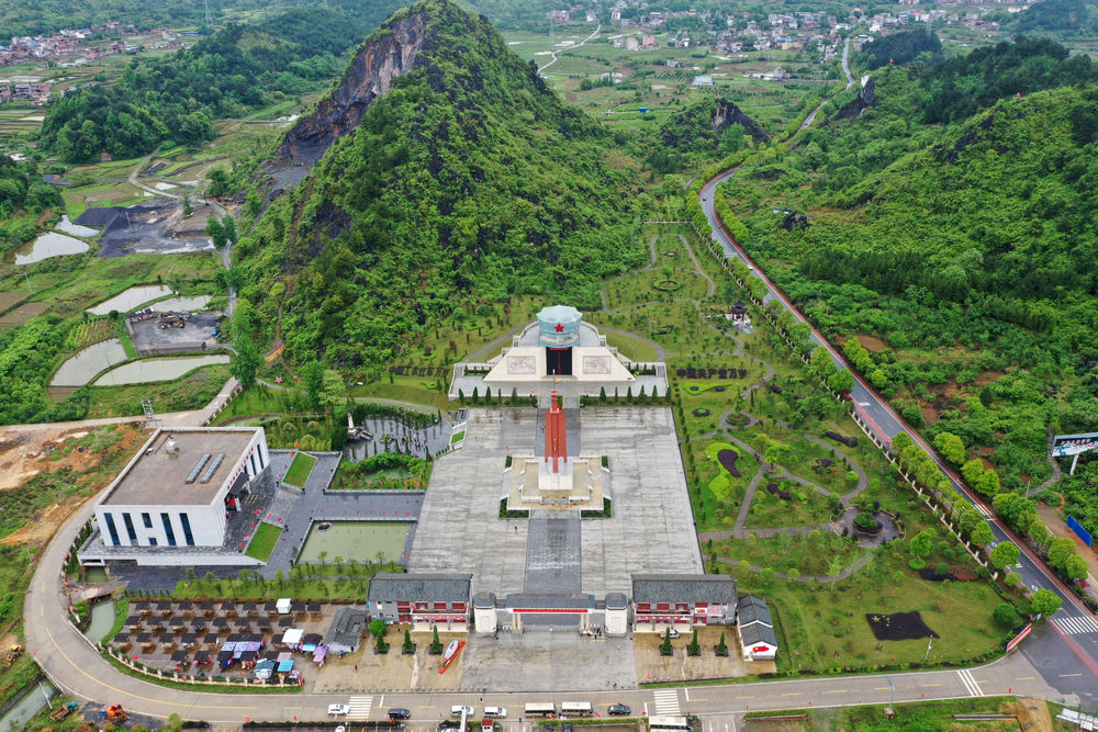 廣西灌陽縣湘江戰(zhàn)役新圩阻擊戰(zhàn)酒海井紅軍紀(jì)念園(無人機(jī)照片,4月27日攝)。新華社記者陸波岸攝