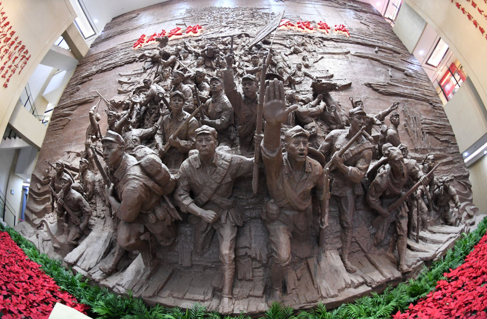 廣西桂林全州縣紅軍長征湘江戰(zhàn)役紀(jì)念館內(nèi)的雕塑(4月26日攝)。新華社記者陸波岸攝