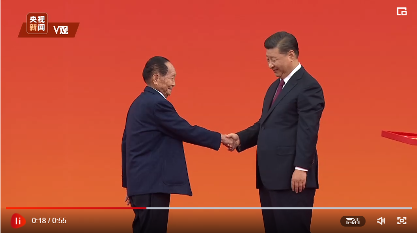 2019年9月29日,中華人民共和國國家勛章和國家榮譽稱號頒授儀式在人民大會堂隆重舉行。習近平向“共和國勛章”獲得者袁隆平頒授勛章。