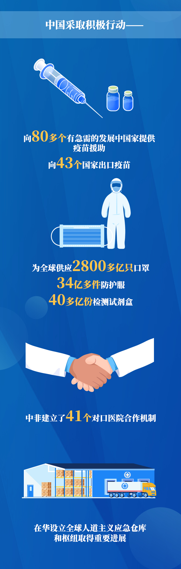 一年前,國家主席習(xí)近平在第73屆世界衛(wèi)生大會視頻會議開幕式上呼吁:讓我們攜起手來,共同佑護各國人民生命和健康,共同佑護人類共同的地球家園,共同構(gòu)建人類衛(wèi)生健康共同體!