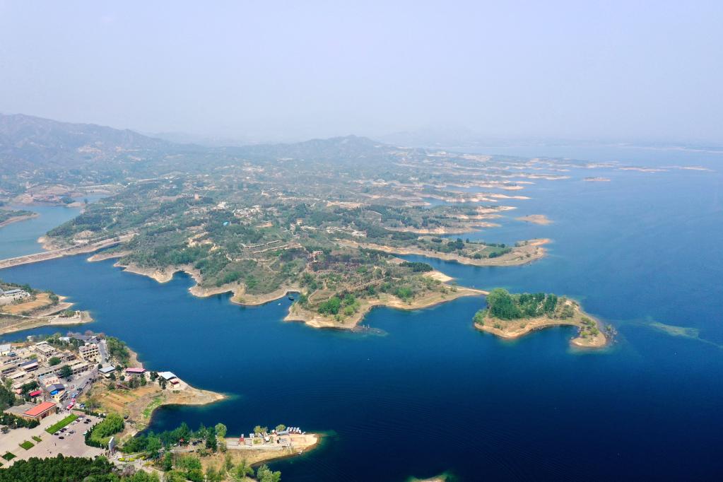 這是4月26日拍攝的崗南水庫(無人機(jī)照片)。新華社記者朱旭東攝