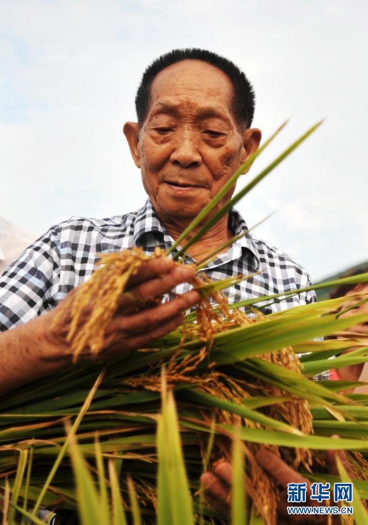 2013年8月19日,袁隆平院士在廣西桂林市灌陽縣黃關(guān)鎮(zhèn)聯(lián)德村袁隆平超級稻第四期攻關(guān)示范片查看水稻生長情況。新華社記者 陸波岸 攝