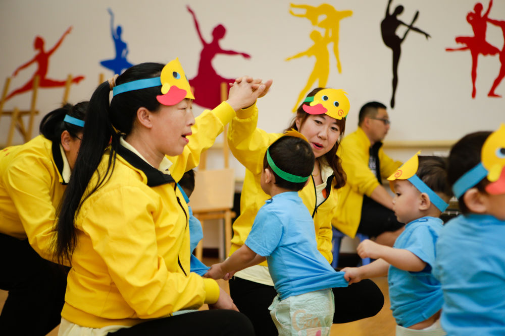 在呼和浩特市兒童福利院舉行的“心懷感恩·多彩六一”文藝演出活動(dòng)上,孩子們和老師一起表演(2018年6月1日攝)。新華社記者 虞東升 攝