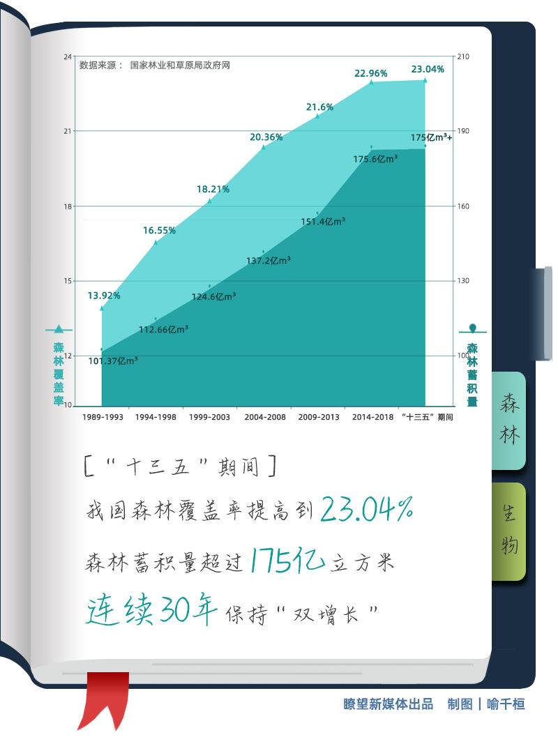 三北防護(hù)林、天然林保護(hù)、退耕還林還草等一系列重大生態(tài)工程深入推進(jìn)。“十三五”期間,我國(guó)森林覆蓋率提高到23.04%,森林蓄積量超過(guò)175億立方米,連續(xù)30年保持“雙增長(zhǎng)”,成為森林資源增長(zhǎng)最多的國(guó)家。