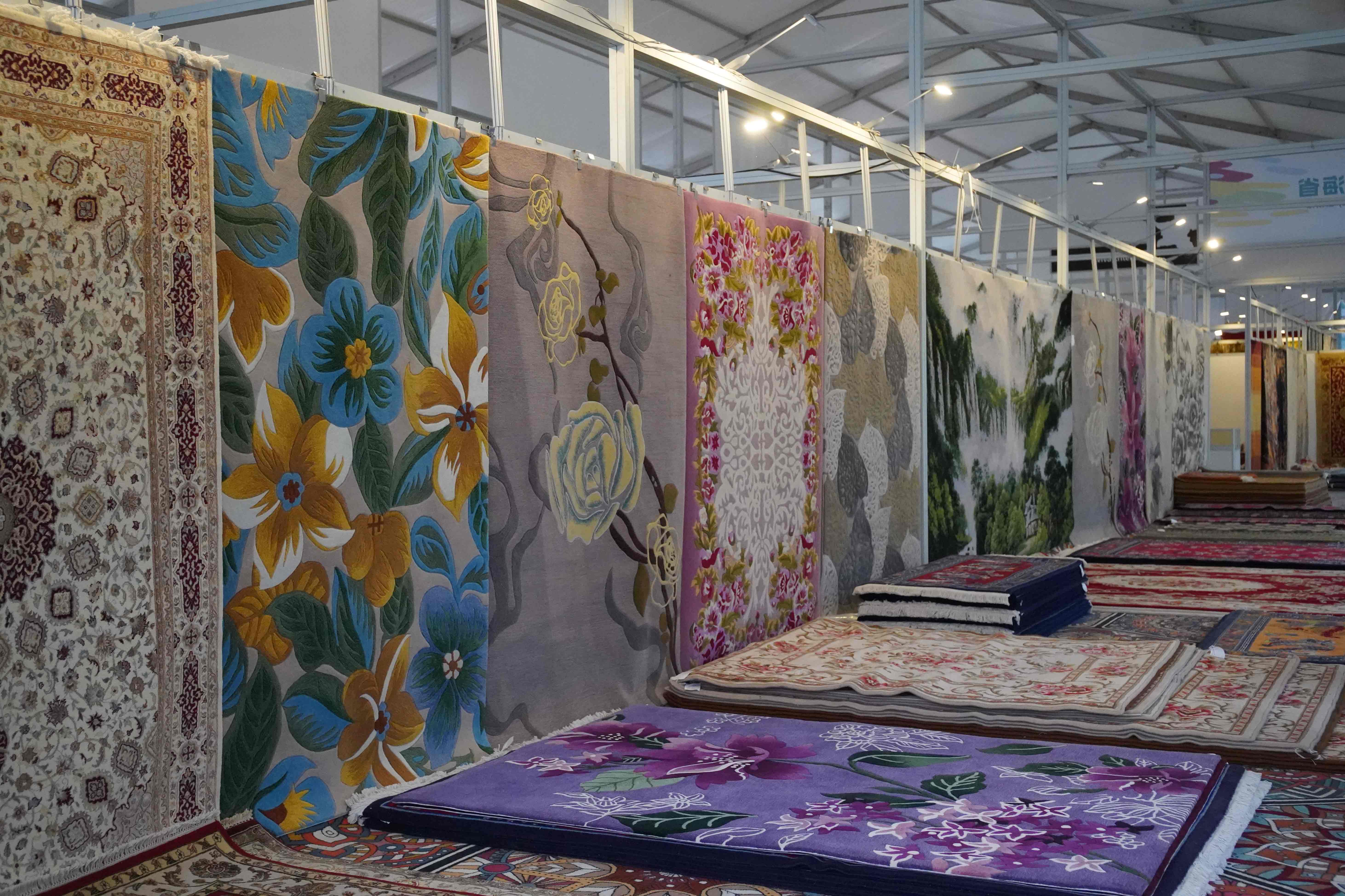 △第18屆中國(青海)藏毯國際展覽會上展出的藏毯。(總臺央廣記者潘毅拍攝)
