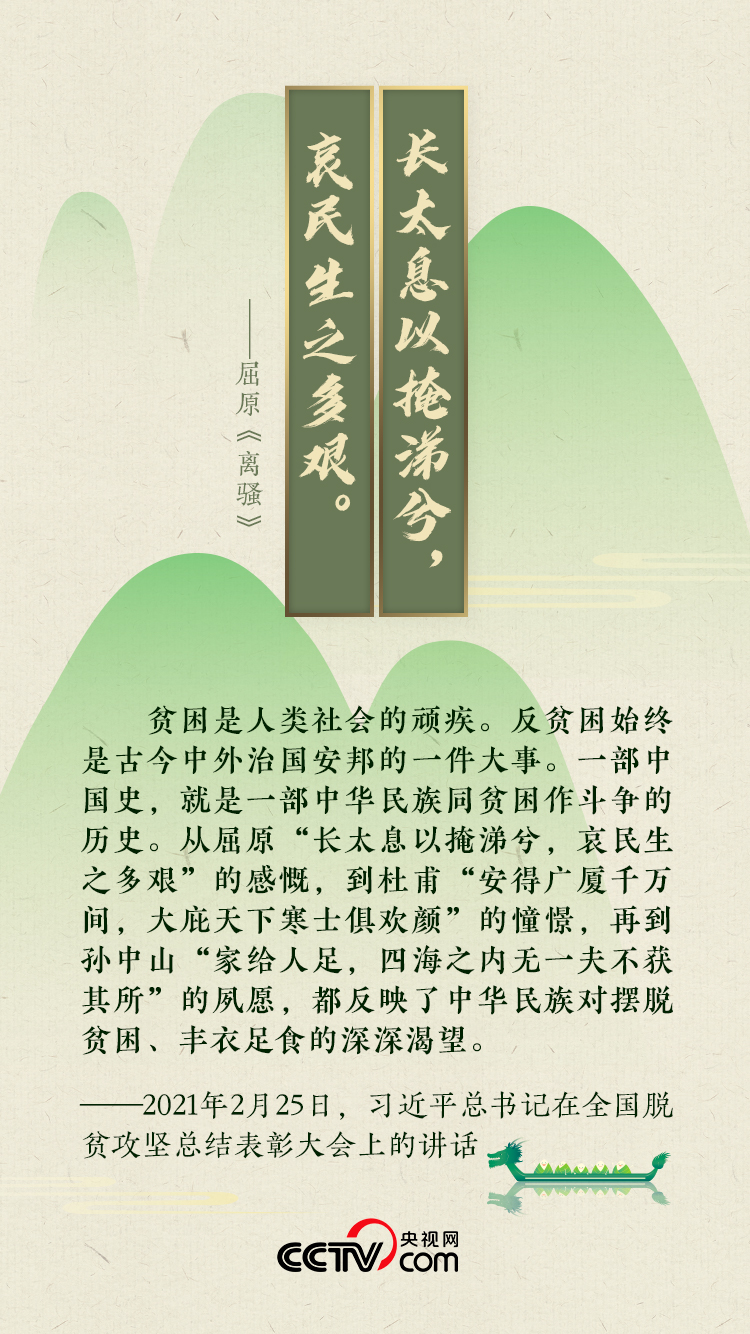 2021年2月25日,習(xí)近平總書記在全國(guó)脫貧攻堅(jiān)總結(jié)表彰大會(huì)上吟誦屈原悲嘆民生不興的詩(shī)句“長(zhǎng)太息以掩涕兮,哀民生之多艱”。