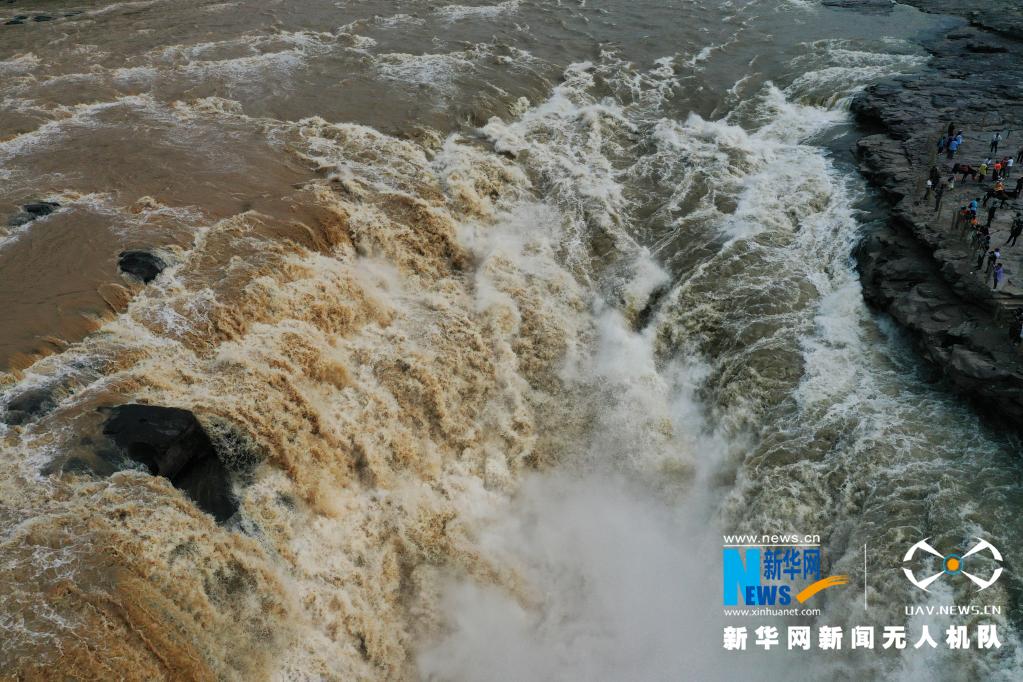 近日,受上游局部地區(qū)強(qiáng)降雨影響,黃河壺口瀑布出現(xiàn)“西邊濁流翻滾,東邊白浪滔滔”的奇特景觀。新華網(wǎng)發(fā)(呂桂明 攝)