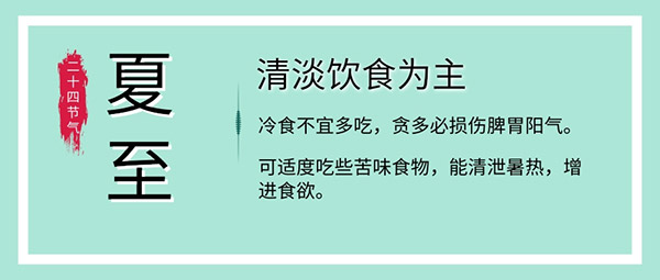 很多人有苦夏的問題,這是源于天氣炎熱,出汗較多,人體消化功能相對較弱。此時飲食宜清淡為主,多食苦味食物,如苦瓜、馬齒莧等,以祛暑清熱;同時,可多吃些生津之品,如西瓜、楊梅等,補充水分,祛除暑濕之邪;切忌過食辛辣熱性食物,以免助熱生火;食用冷食瓜果應當適可而止,不可過食,以免損傷脾胃。