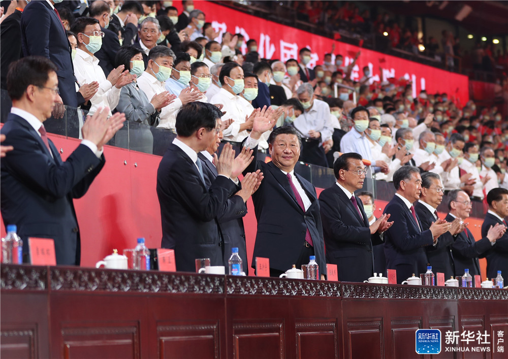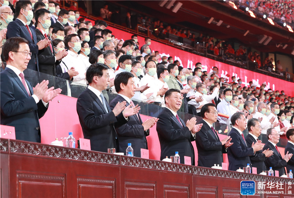 6月28日晚,慶祝中國(guó)共產(chǎn)黨成立100周年文藝演出《偉大征程》在國(guó)家體育場(chǎng)盛大舉行。習(xí)近平、李克強(qiáng)、栗戰(zhàn)書、汪洋、王滬寧、趙樂(lè)際、韓正、王岐山等黨和國(guó)家領(lǐng)導(dǎo)人,同約2萬(wàn)名觀眾一起觀看演出。新華社記者 鞠鵬 攝