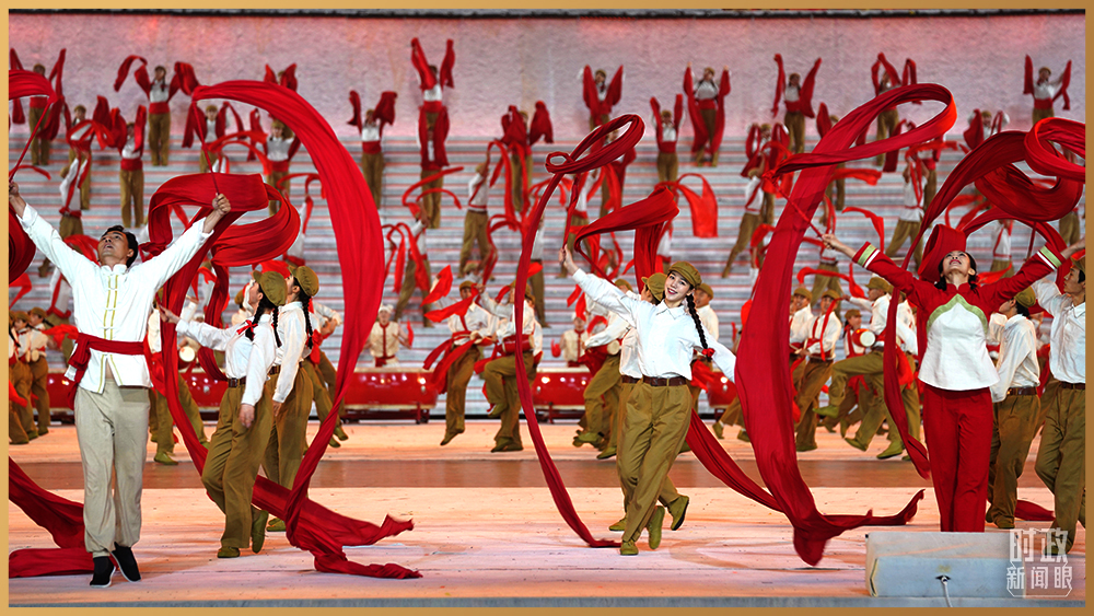 △舞蹈《開國大典》回顧了熱火朝天的社會主義革命和建設(shè)年代。(總臺央視記者魏幫軍拍攝)