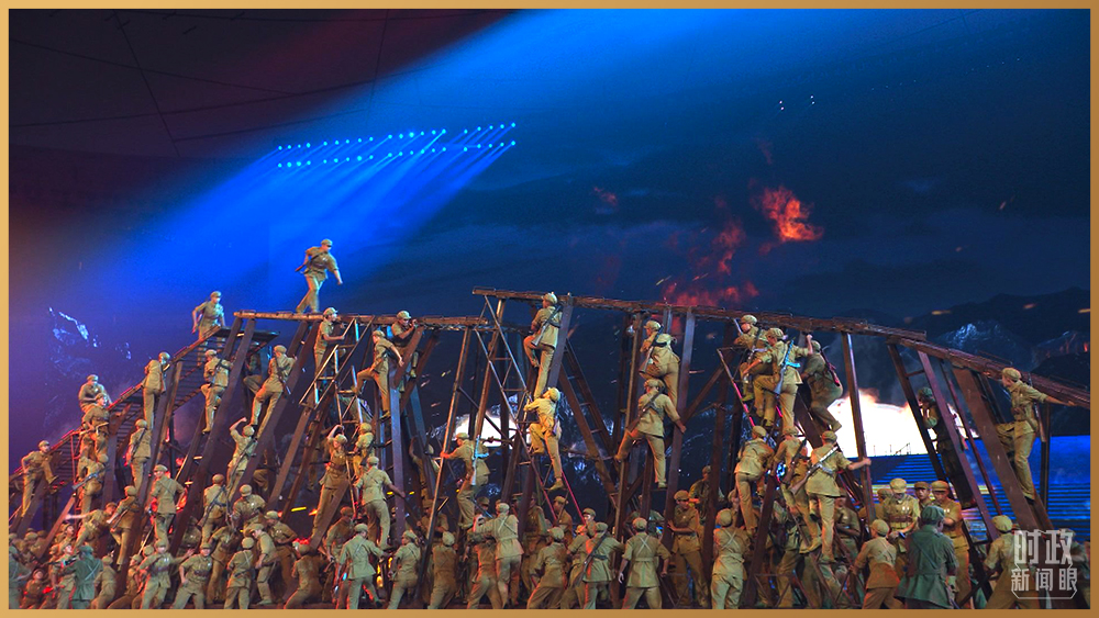 這場演出以大型情景史詩形式呈現(xiàn),共分為“浴火前行”“風雨無阻”“激流勇進”“錦繡前程”四個篇章。中央舞臺的巨型屏幕,呈現(xiàn)流淌的史詩畫卷。情景合唱與舞蹈《戰(zhàn)旗美如畫》,還原抗美援朝的烽火歲月。合唱與舞蹈《行進的火炬》,重溫北京奧運會經(jīng)典場景。