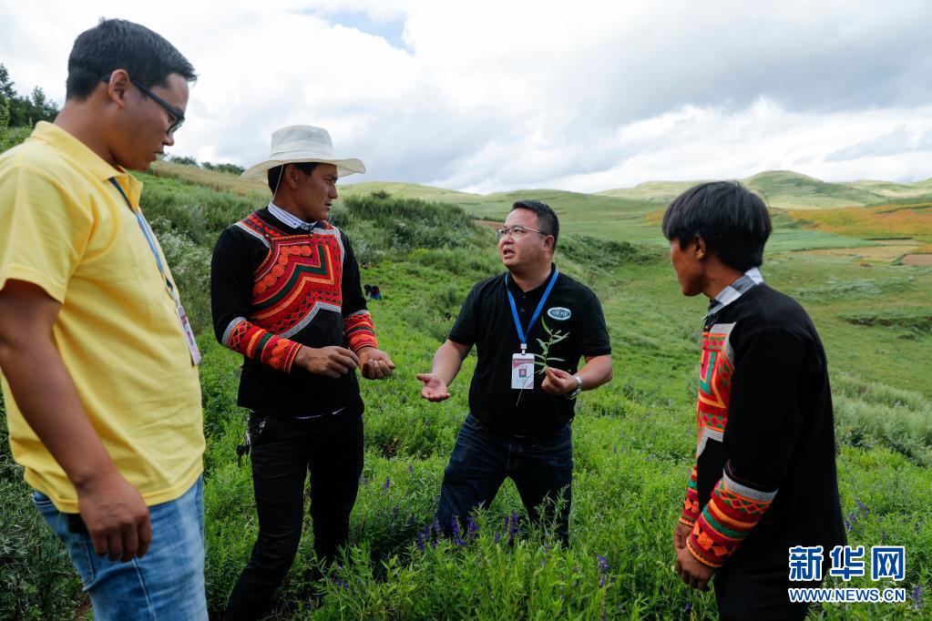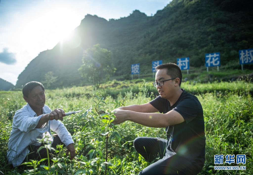 貴州省望謨縣樂旺鎮(zhèn)黨委第一書記張航(右)在農(nóng)技員岑連剛的指導(dǎo)下給花椒苗修枝(2020年9月15日攝)。新華社記者 陶亮 攝
