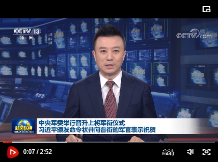 下午5時(shí)15分許,晉銜儀式在莊嚴(yán)的國歌聲中開始。中央軍委副主席許其亮宣讀了中央軍委主席習(xí)近平簽署的晉升上將軍銜命令。中央軍委副主席張又俠主持晉銜儀式。