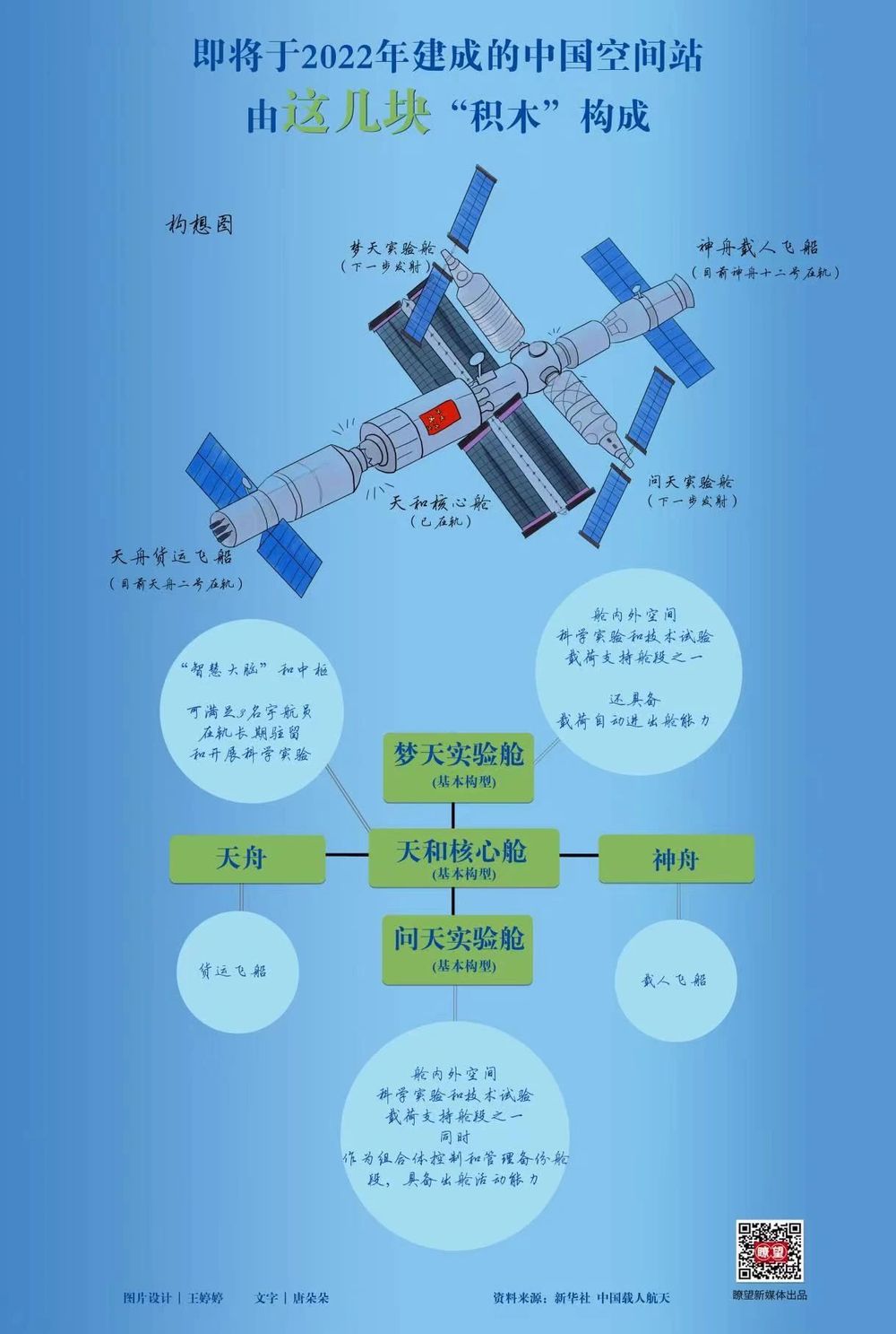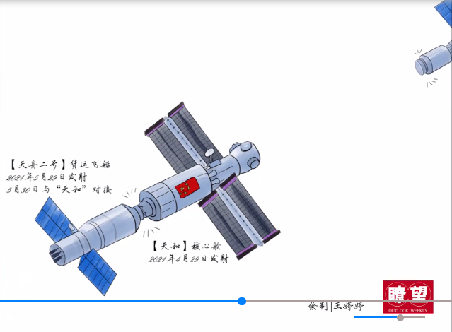▲ 這幾天大家觀測的中國空間站是這樣構成的(瞭望新媒體出品,繪圖制作 | 王婷婷;創(chuàng)意統(tǒng)籌 | 唐朵朵)