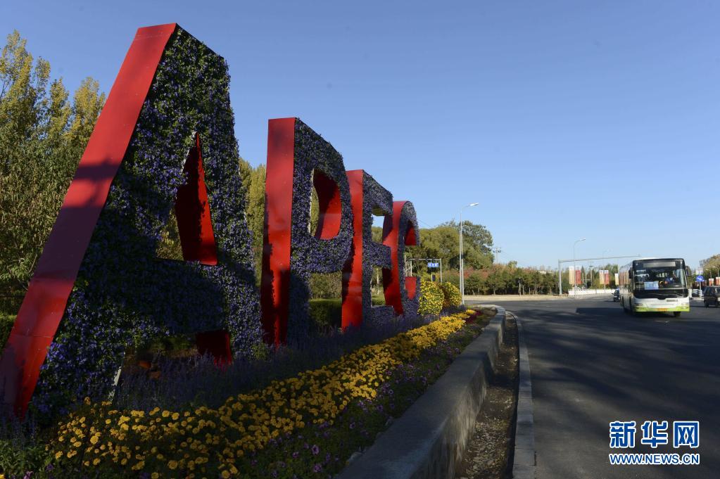 北京懷柔雁棲湖周邊APEC主題景觀(2014年11月2日攝)。新華社記者 馬寧 攝
