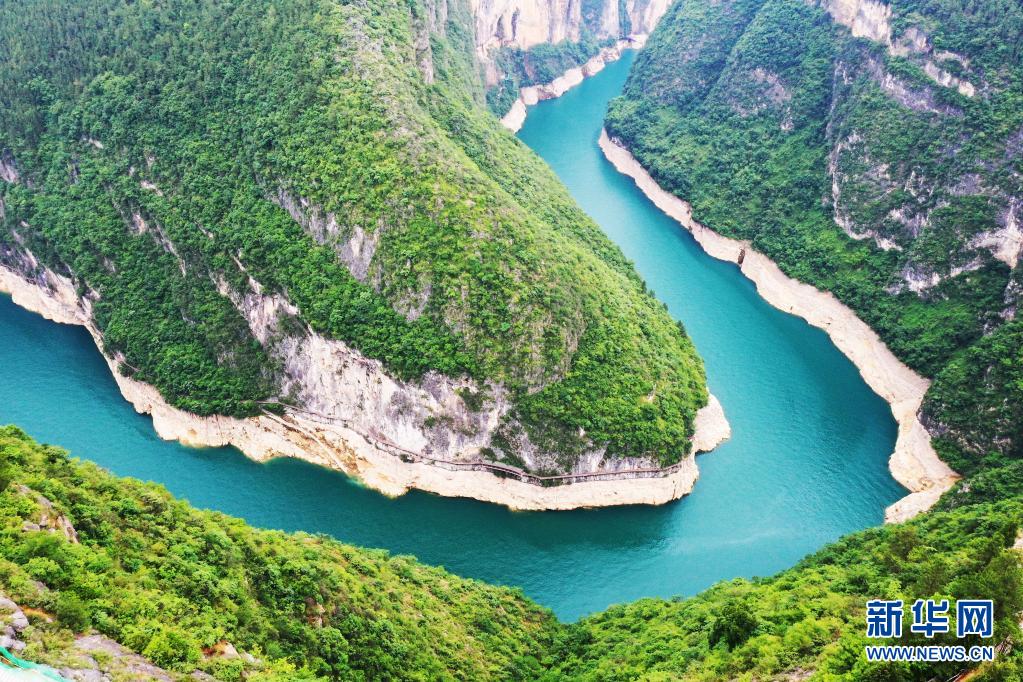 重慶市巫山縣魚頭灣景象(2020年5月26日攝,無人機照片)。長江經濟帶沿江11省市大力推進生態(tài)環(huán)境整治,“共抓大保護、不搞大開發(fā)”,共同舞動高質量發(fā)展的“綠色長龍”。新華社記者 王全超 攝