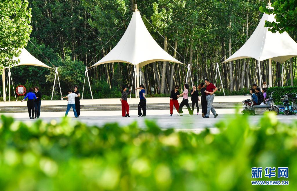 市民在河北省文安縣森林公園內健身(2020年6月5日攝)。新華社記者 李曉果 攝