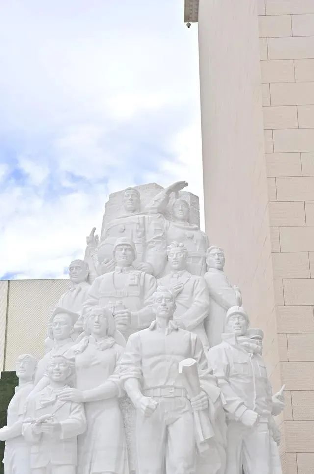 在中國共產(chǎn)黨歷史展覽館廣場上,《信仰》《偉業(yè)》《攻堅》《追夢》四組大型雕塑巍然矗立,氣勢恢宏,分別對應“四個偉大”主題,276個人物與583塊漢白玉融為一體。