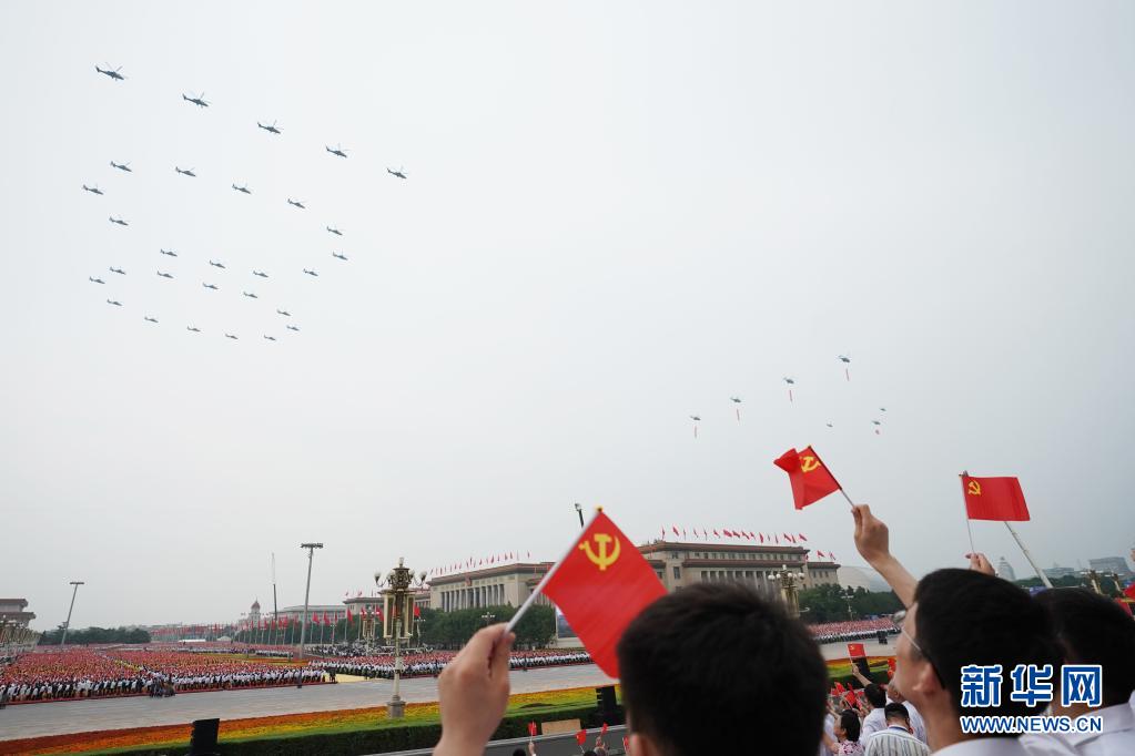 7月1日上午,慶祝中國共產(chǎn)黨成立100周年大會將在北京天安門廣場隆重舉行。這是飛行慶祝表演。新華社記者 鞠煥宗 攝